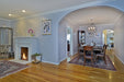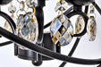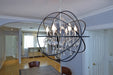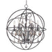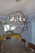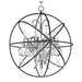 A spherical frame of metal surround a simple line chandelier draped in crystal for a transitional style that fits any interior design.