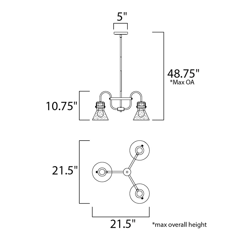 Maxim 26116 Seafarer 3-lt 22" Chandelier with Bulbs