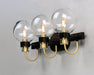 This classic Mid Century Modern design features a frame finished in a combination of Bronze and Satin Brass. The arms terminate at rings that support Clear heavy blown glass shades which were prevalent in this era.