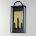 The Manchester series is inspired by classic coach lanterns and consists of minimally extended sconces in a variety of sizes that have been modified with simplified embellishments. The black frames have been modified with a squared arc handle and a contrasting Burnished Gold plate that reflects clusters of candle lights surrounded by Clear glass panels. This collection references historic exterior sconces while modernizing their appearance. Complement the design with tubular lamps to accentuate the verticality of the frames.