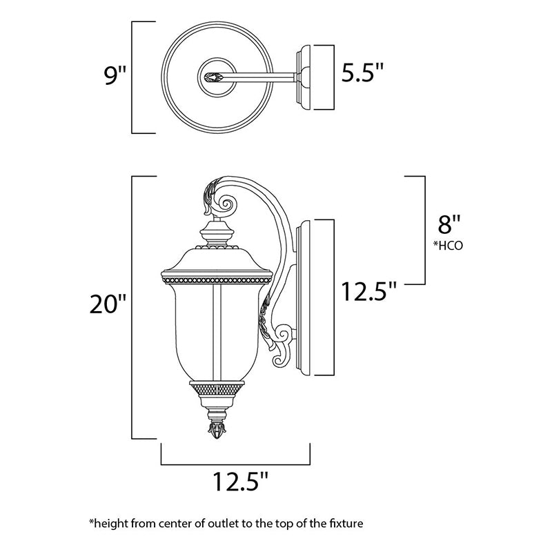 - Backplate: 5.5" W x 12.5" H x 8" HCO