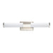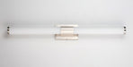 Cylinders of White cased glass are mounted onto a cast aluminum frame of Satin Nickel or Polished Chrome. LED modules evenly illuminate and provide soft yet ample illumination. Multi volt input is standard which allows for installation into commercial applications.