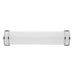 Commercial grade energy efficient lighting featuring linear frames of metal finished in Satin Nickel diffused by an etched opal acrylic creating an updated energy efficient classic.