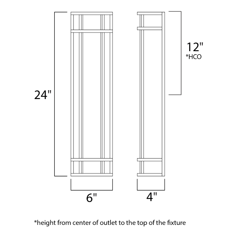 - Backplate: 5.25" W x 23.25" H x 12" HCO