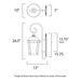 - Backplate: 7" W x 15.75" H x 13.5" HCO