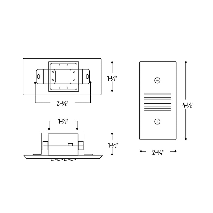 - Dimensions: 4-1/2"W x 2-3/4"H x 1-1/8"E