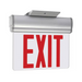 The SCX Sure-Lites Complete Edge Lit Exit series are designed for multiple installation applications with a pivot housing design that allows surface, recessed wall, recessed ceiling and sloped ceiling installations. The SCX series are provided with a surface mount canopy and a recessed box for universal mounting as well as a single-sided clear background lens panel and double-sided mirror lens panel for easy stocking and ordering. Housings are aesthetically pleasing satin aluminum.